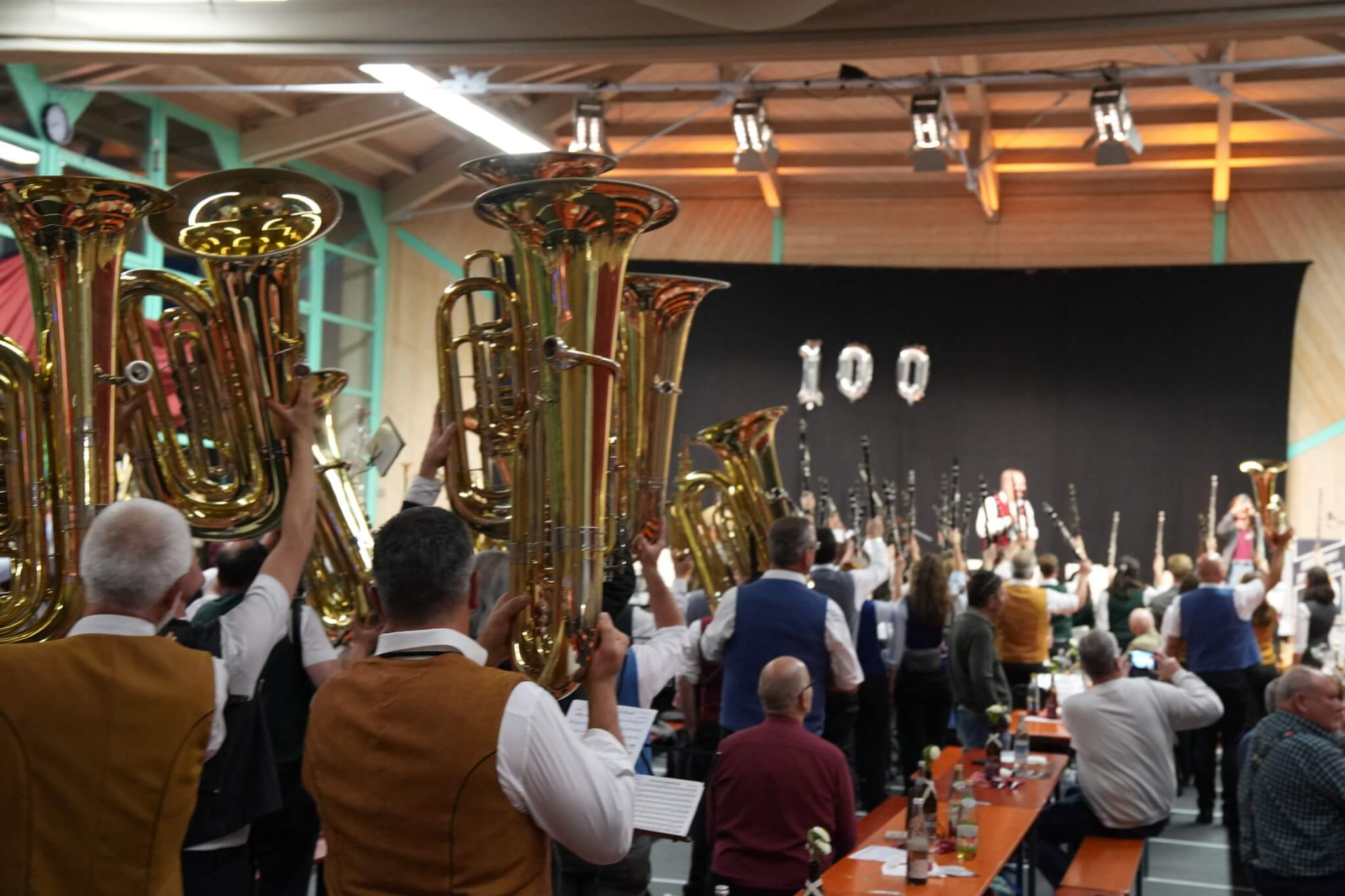 Zum Höhepunkt des Abends versammelten sich alle Musikerinnen und Musiker zum Gesamtchor – ein Moment, der stets Gänsehaut erzeugt. Gespielt wurden unter anderem die deutsche Nationalhymne und der Kreismarsch „Von der Alb zur Donau“ Wenn über hundert Instrumente gemeinsam erklingen, zeigt das eindrucksvoll die Verbundenheit der Vereine und sorgt für den ein oder anderen Gänsehautmoment.